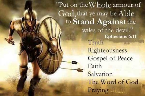 “Finally, be strong in the Lord and the strength of His might. Put on the whole armor of God, that you might be able to stand against the schemes of the devil. For we do not wrestle against flesh and blood, but against the rulers, against the authorities, against the cosmic powers over this present darkness, against the spiritual forces of evil in the heavenly places. Therefore take up the whole armor of God, that you may be able to withstand in the evil day, and having done all, to stand firm. Stand therefore, having fastened on the belt of truth, and having put on the breastplate of righteousness, and, as shoes for your feet, having put on the readiness given by the gospel of peace. In all circumstances take up the shield of faith, with which you can extinguish the flaming darts of the evil one; and take the helmet of salvation, and the sword of the Spirit, which is the word of God.” Ephesians 6:10-17